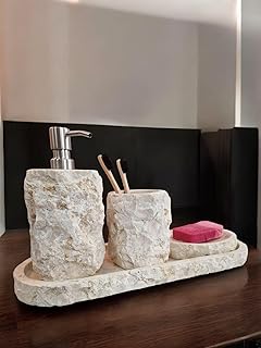 Naturstein wie Marmor, Granit oder Schiefer bringt natürliche Textur und Individualität ins Bad. Jedes Stück ist ein Unikat mit eigener Maserung und Farbgebung. Seifenschalen, Zahnputzbecher oder Ablagen aus Naturstein sind nicht nur praktisch, sondern auch wunderschöne Designobjekte.
